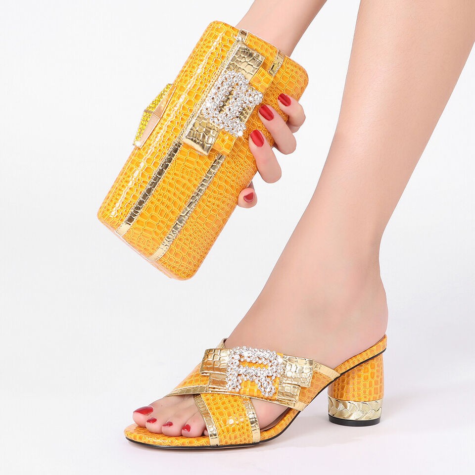 Women Sandals Luxury Matching Shoes And Bag Mid 6.5CM Italian Fashion Rhinestone