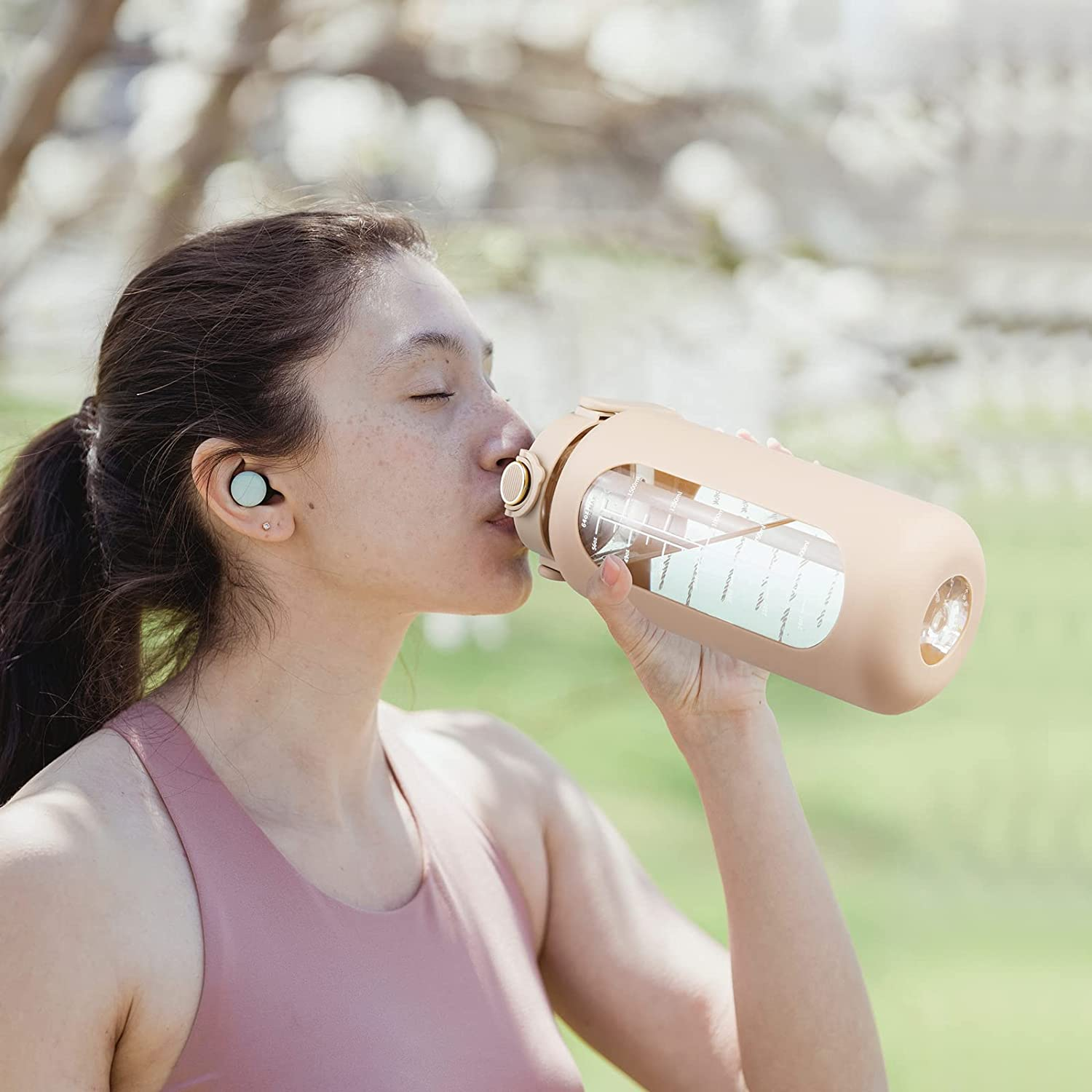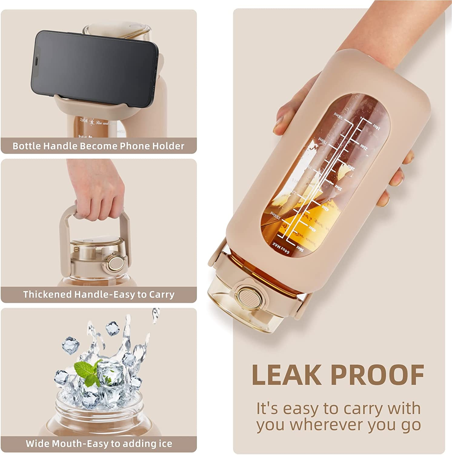 64Oz Glass Water Bottle with Straw and Handle Lid Half Gallon Motivational Glass