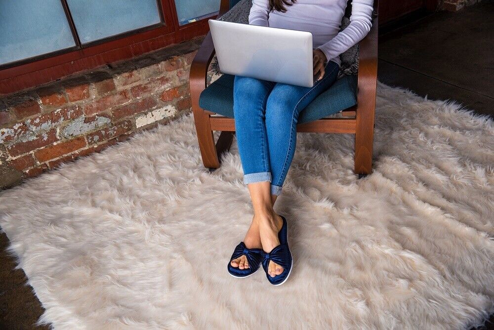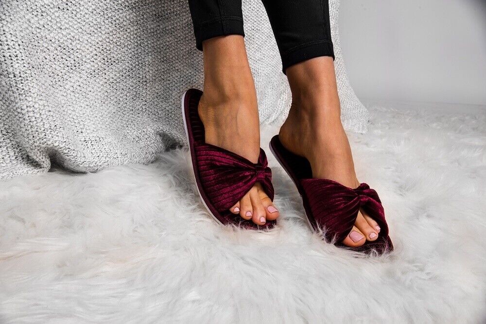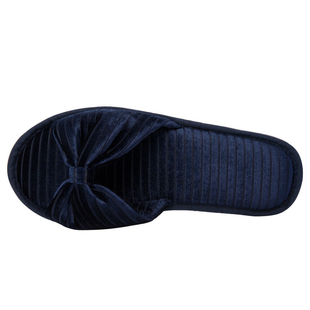 Aerusi Women Bow Open Toe Slide Memory Foam Velvet Slippers Non-Slip House Shoes