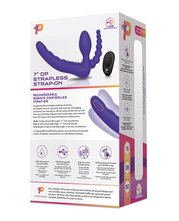 American Pegasus – 7-inch Remote Control Strapless 7″DP Strapless Strap-On – Purple