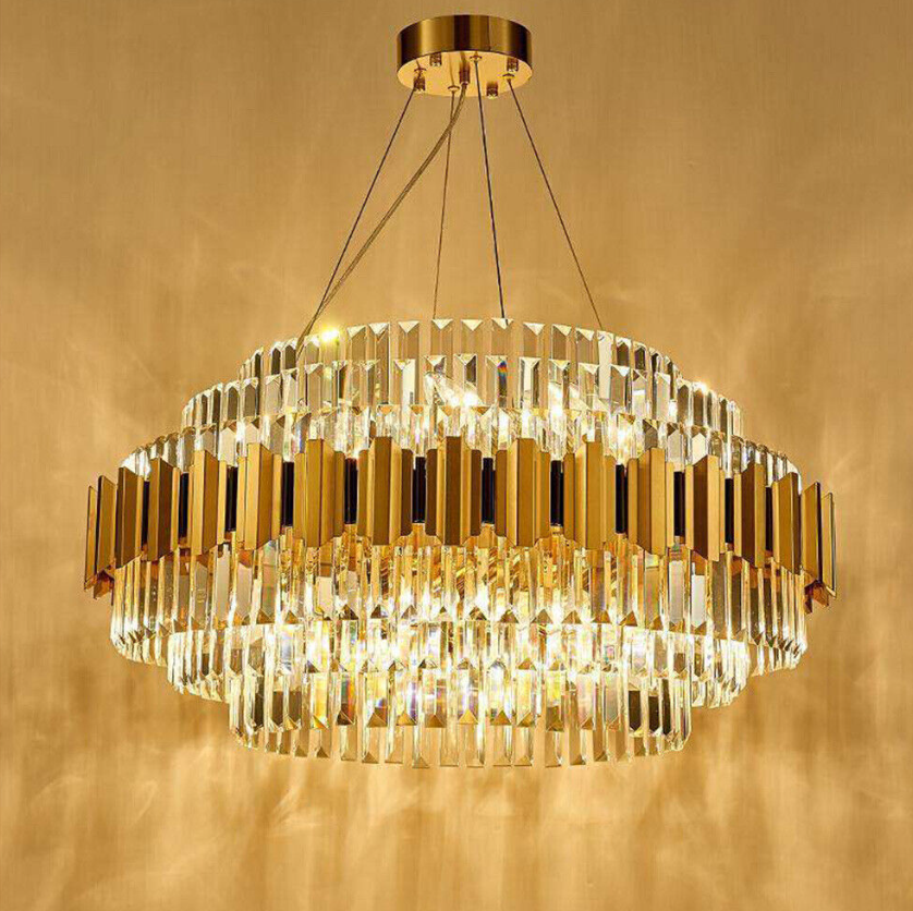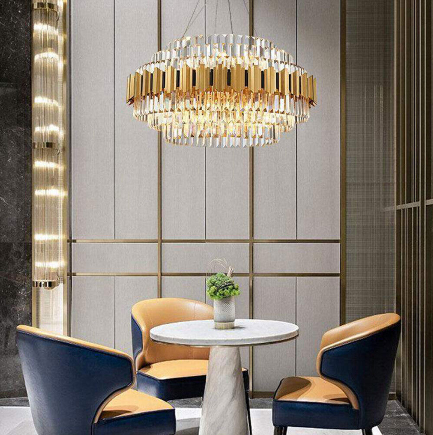 [MATERIAL]: This Chandelier Is Made Up of High-quality K9 Crystal Prisms & Polished Stainless Steel Gold Bars Which are Heat-resistant and Anti-corrosion