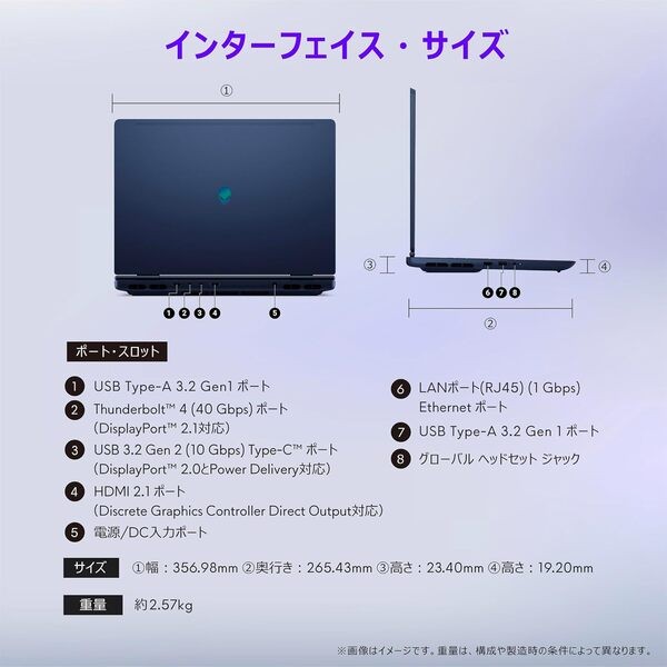 Dell ノートパソコン Alienware 16X Aurora AC16251 16インチ Intel®Core™Ultra 7 プロセッサー 255HX RTX 5060 メモリ32GB SSD1TB Windows 11 インターステラー インディゴ 翌営業日対応オンサイト出張修理サービス1年(HDD返却不要サービス) NAA76-FNA
