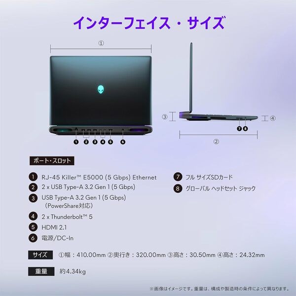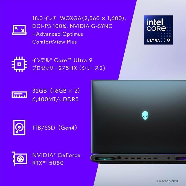 Dell ノートパソコン Alienware 18 Area-51 AA18250 18インチ Intel®Core™Ultra 9 プロセッサー 275HX RTX 5080 メモリ32GB SSD1TB Windows 11 リキッド ティール 翌営業日対応オンサイト出張修理サービス1年 NAA108-FN