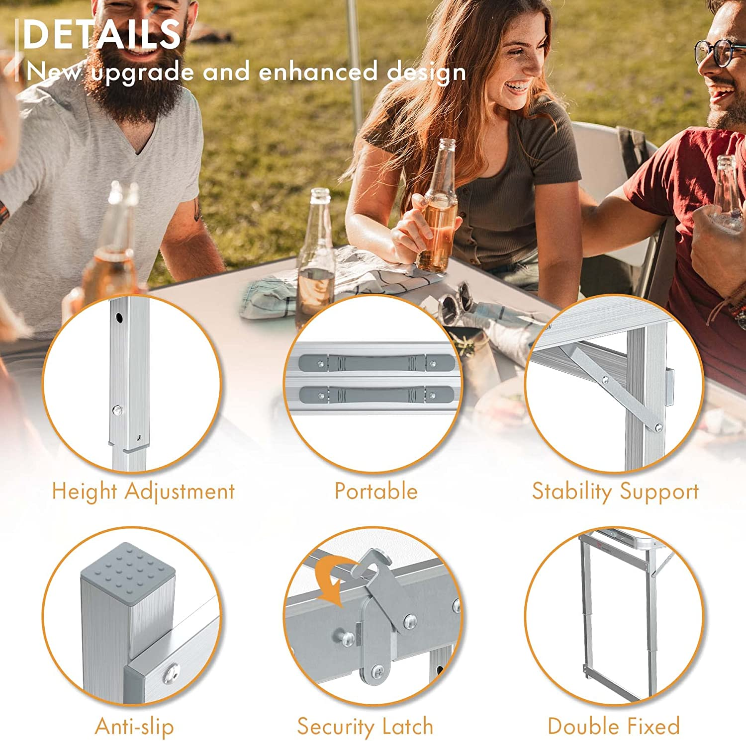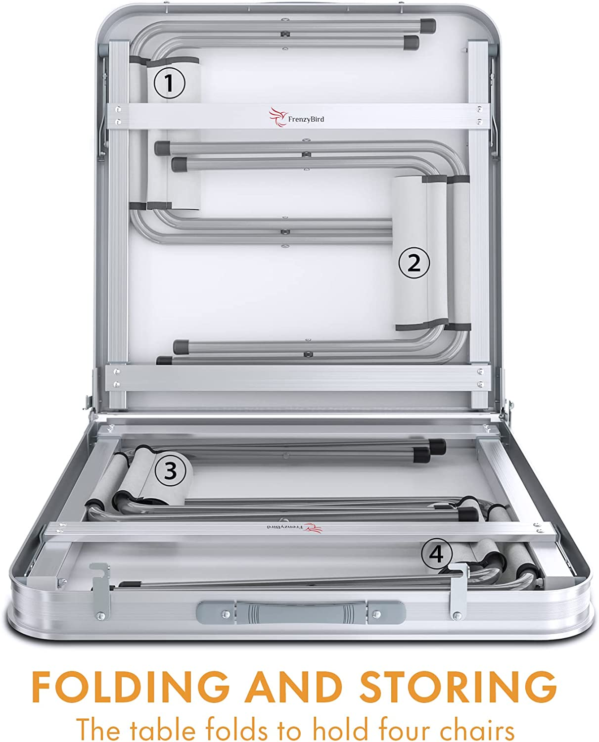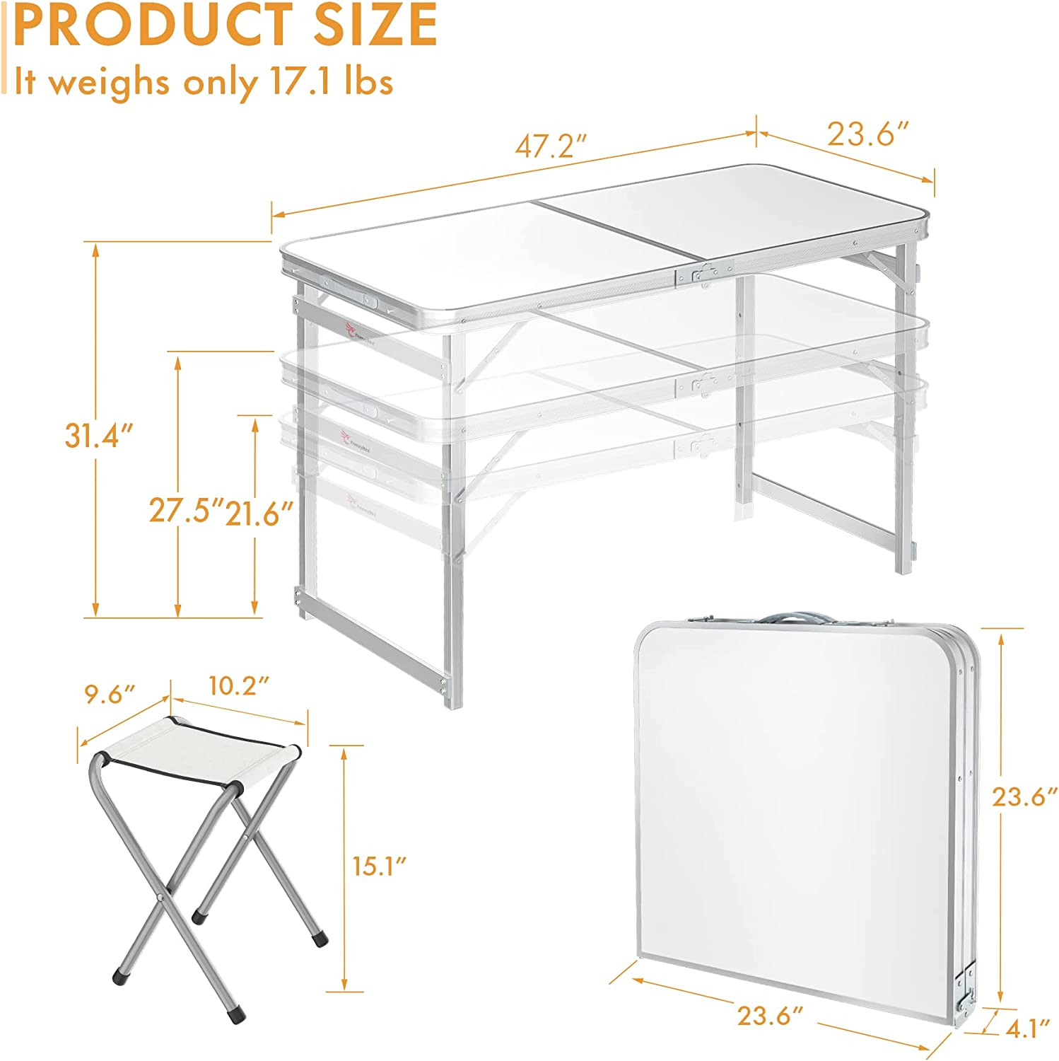 Folding Picnic Table with 4 Stools, Aluminum Table Oxford Mat Chair Set for up t