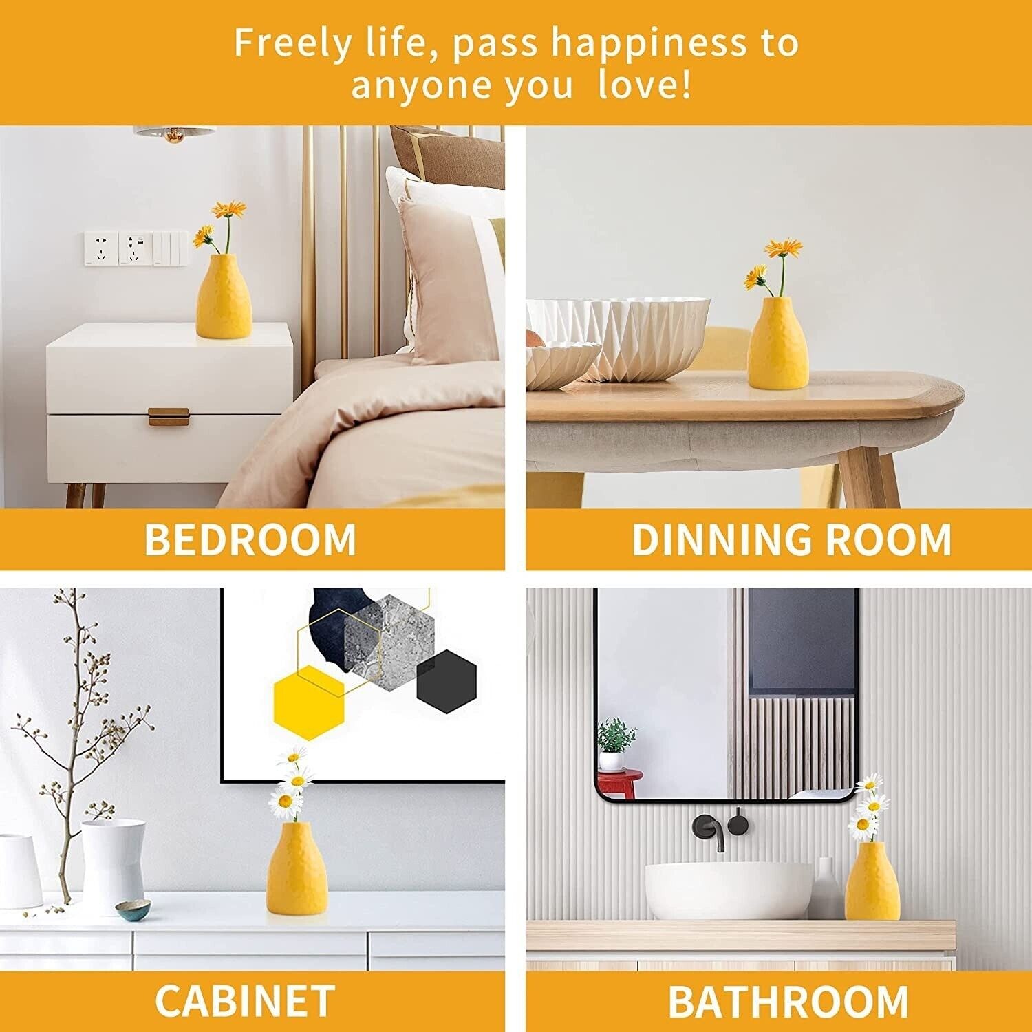 Home Living Room Decor Set of 3 Small Yellow Stoneware Ceramic Flowers Vase
