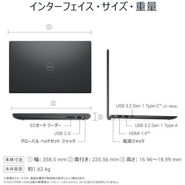 【GRAILED JP限定】Dell ノートパソコン Dell 15 DC15250 15.6インチ Intel Core i5-1334U メモリ16GB SSD512GB Windows 11 カーボンブラック 翌営業日対応オンサイト出張修理サービス1年(HDD返却不要サービス) ND65-FWBA