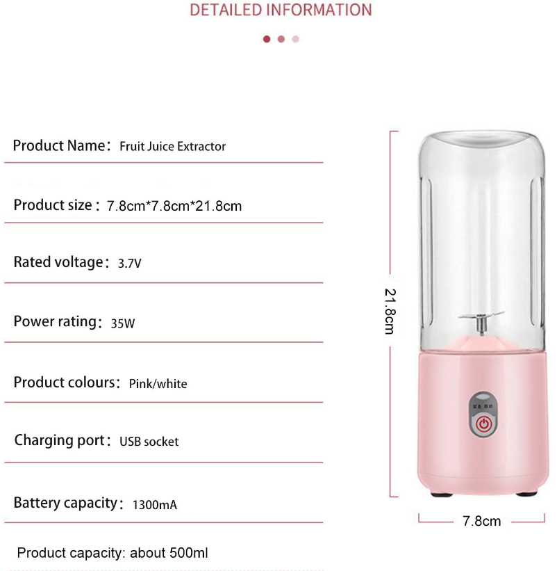 Instructions for use: clean the auxiliary ingredients into the cup, add the appropriate amount of water, tighten the juice machine, start the switch to start working (built-in safety valve, no tighten the cup to start, the product will not work). Single use try not to exceed one minute, you can pause and then start. If the new machine does not work, is no power, please charge first and then use.