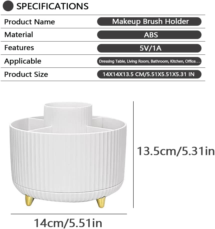 Makeup Organizer, 360 Rotating Makeup Brush Holder, 5 Slot Large Capacity Makeup