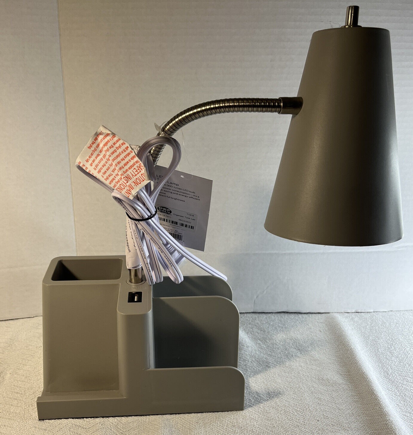 Room Essentials Organizer Task Desk Table LED Lamp, USB Port, Xtra Outlet New