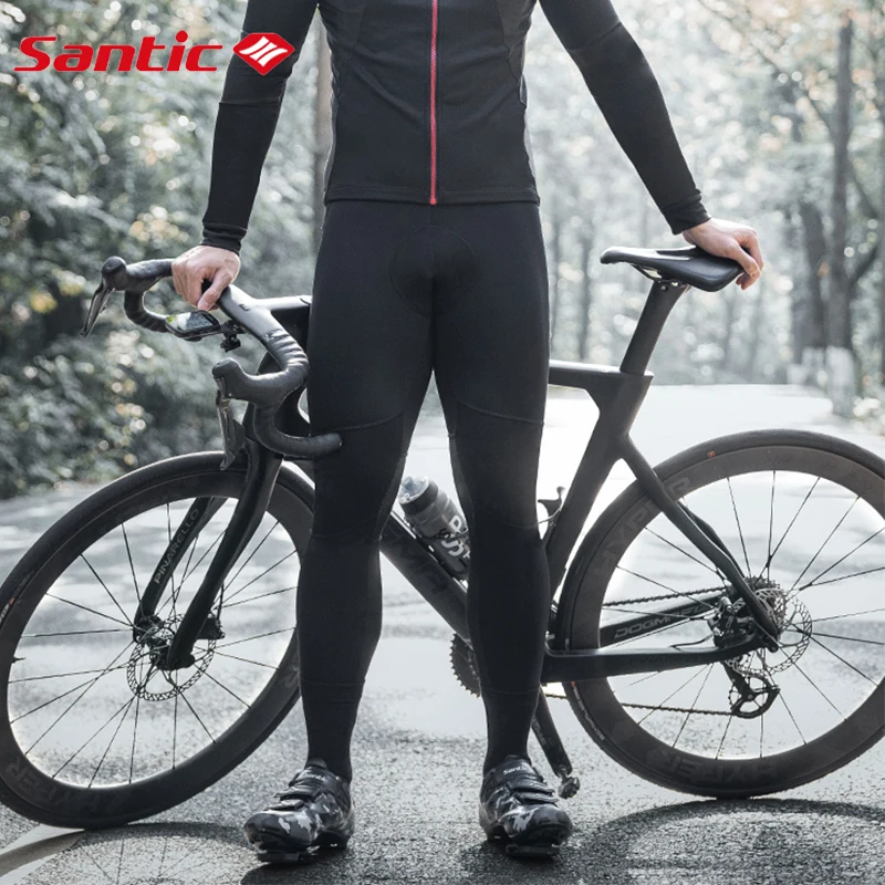 Santic Autumn Winter Bike Bike Pants Pads Fleece Warm Cycling Tights Long Trousers Windproof Thermal MTB Road Bicycle Long Pant
