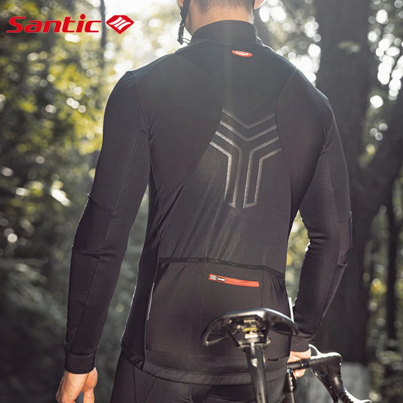 Santic Winter Warm Bicycle Jackets Mens Long Sleeves Tops Coat Bike Jersey Breathable Reflective MTB Road Fleece Cycling Jacket
