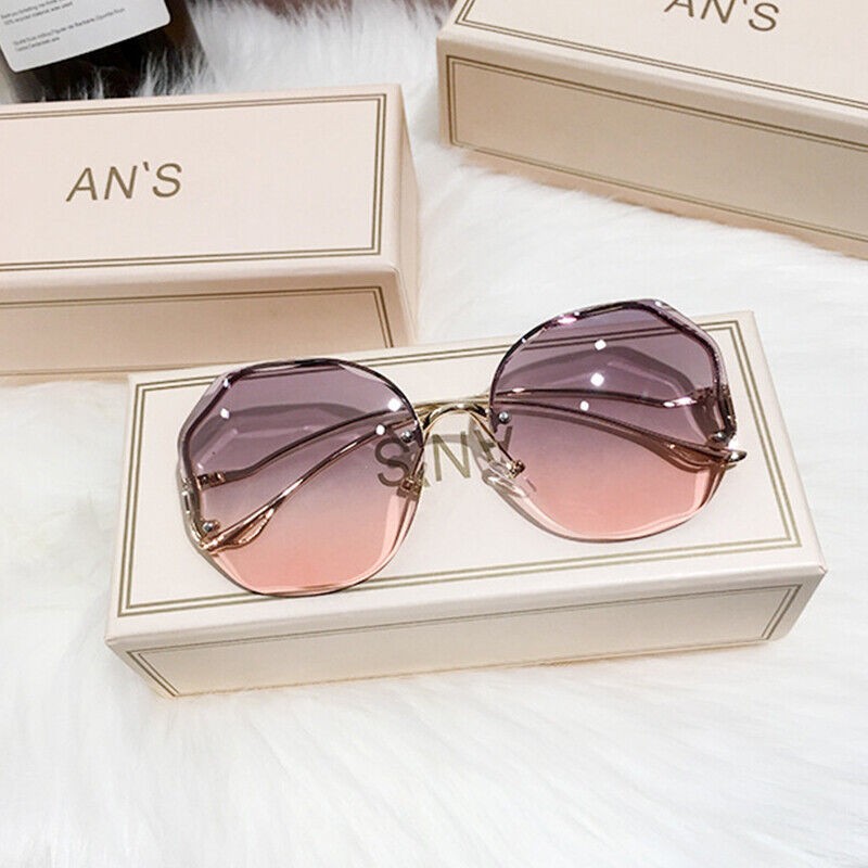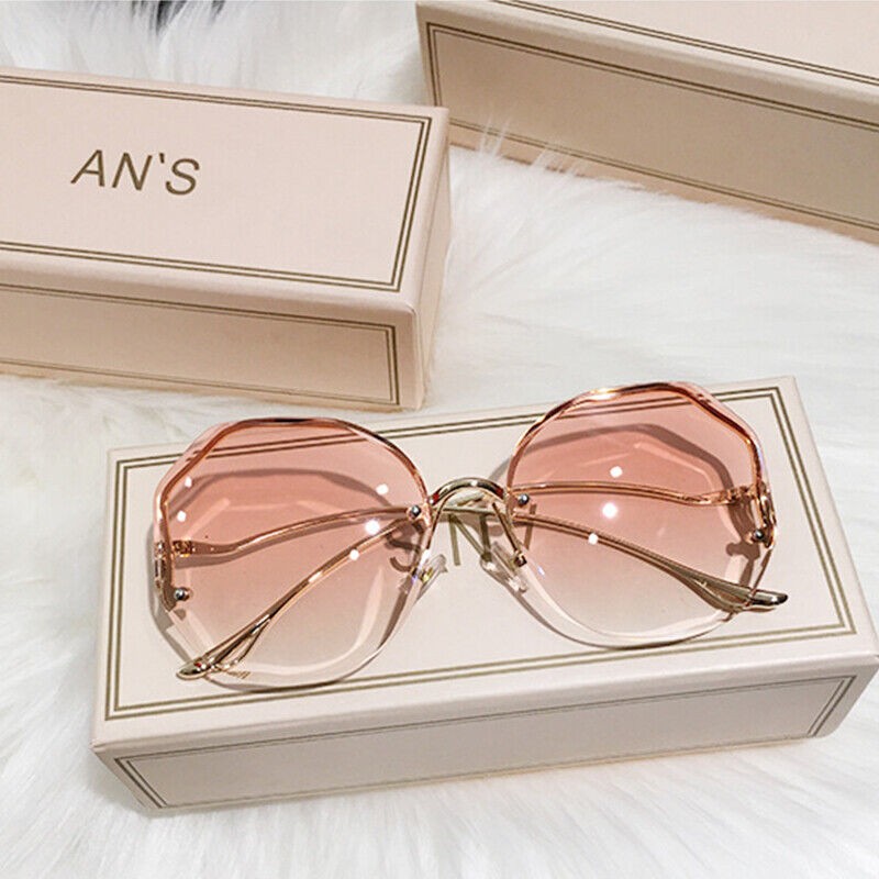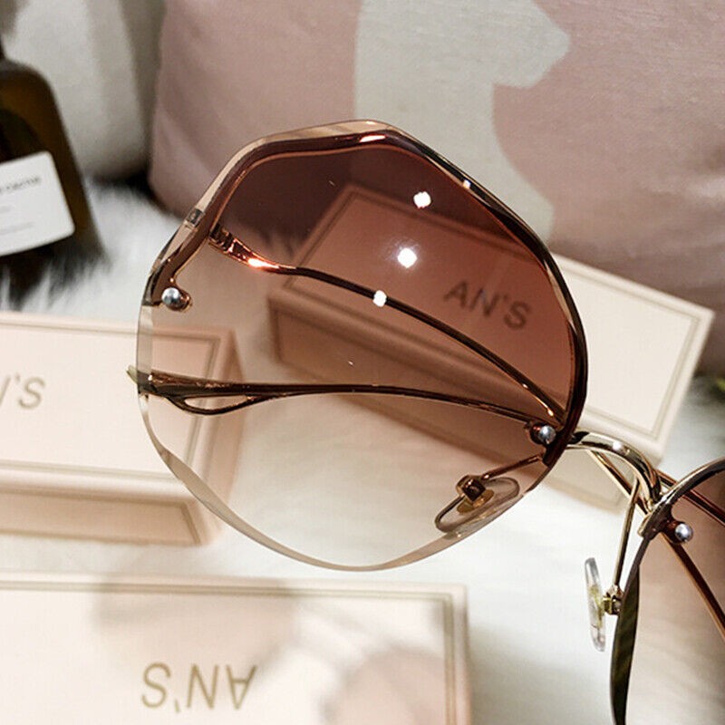 UV400 Luxury Rimless Sunglasses Women Ladies Fashion Oversize Gradient Shades