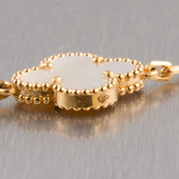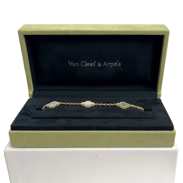 Van Cleef Arpels Vintage Alhambra MOP 5 Motif 18k Yellow Gold Bracelet BOX/CERT SKU: 500923